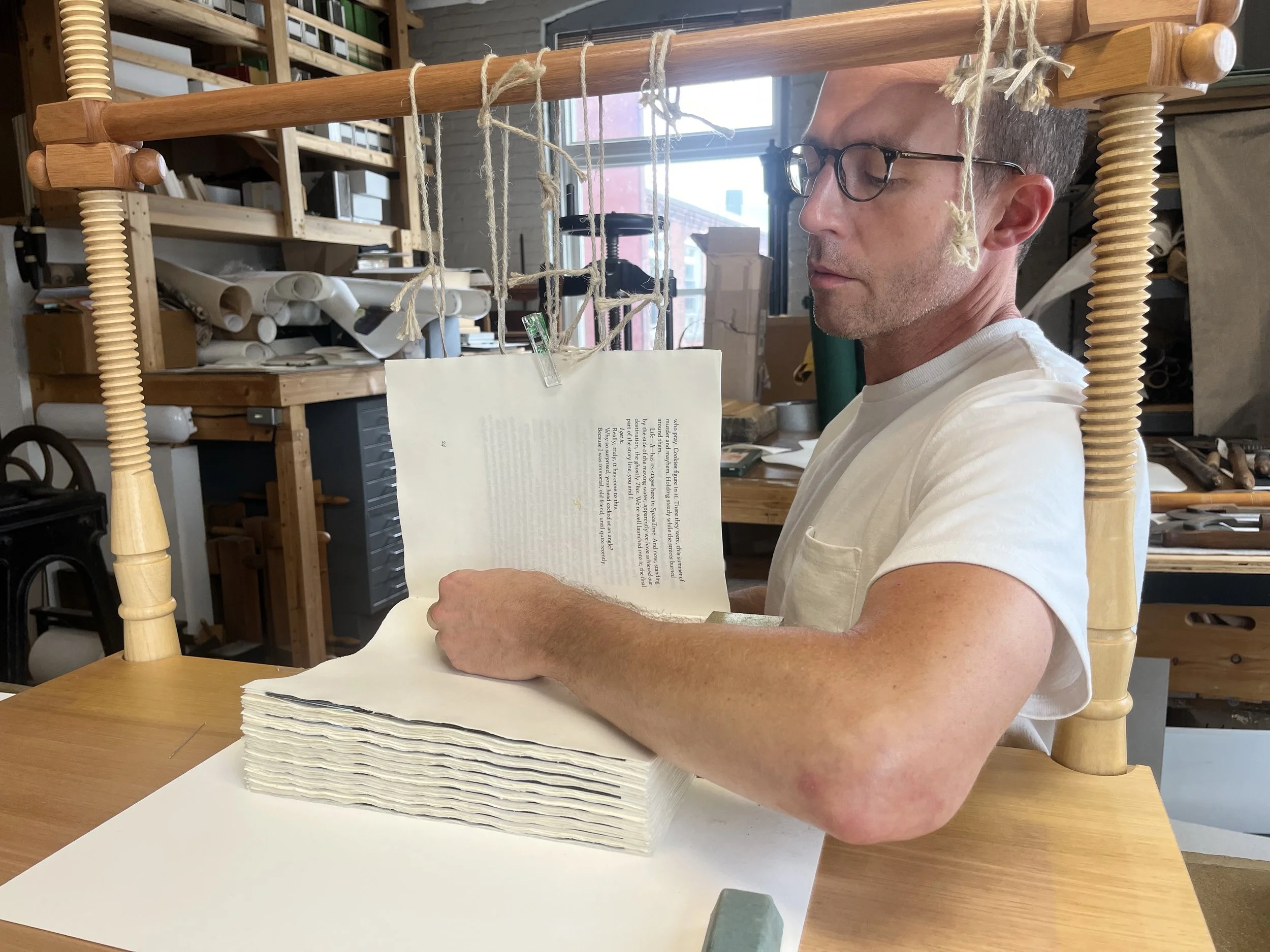 I am a bookbinder in Easthampton, Massachusetts, working from my studio at One Cottage Street. I am a graduate of North Bennet Street School’s Bookbinding program (2019), and have studied fine binding with Monique Lallier and Daniel Kelm. I have held book conservation internships at the Folger Shakespeare Library, Dartmouth College Library’s Preservation Services, and at The National Parks Service’s Historical Architecture Conservation and Engineering Center. My work is held in private collections in the USA and Europe, The Library of Congress, and The Morgan Library & Museum.
